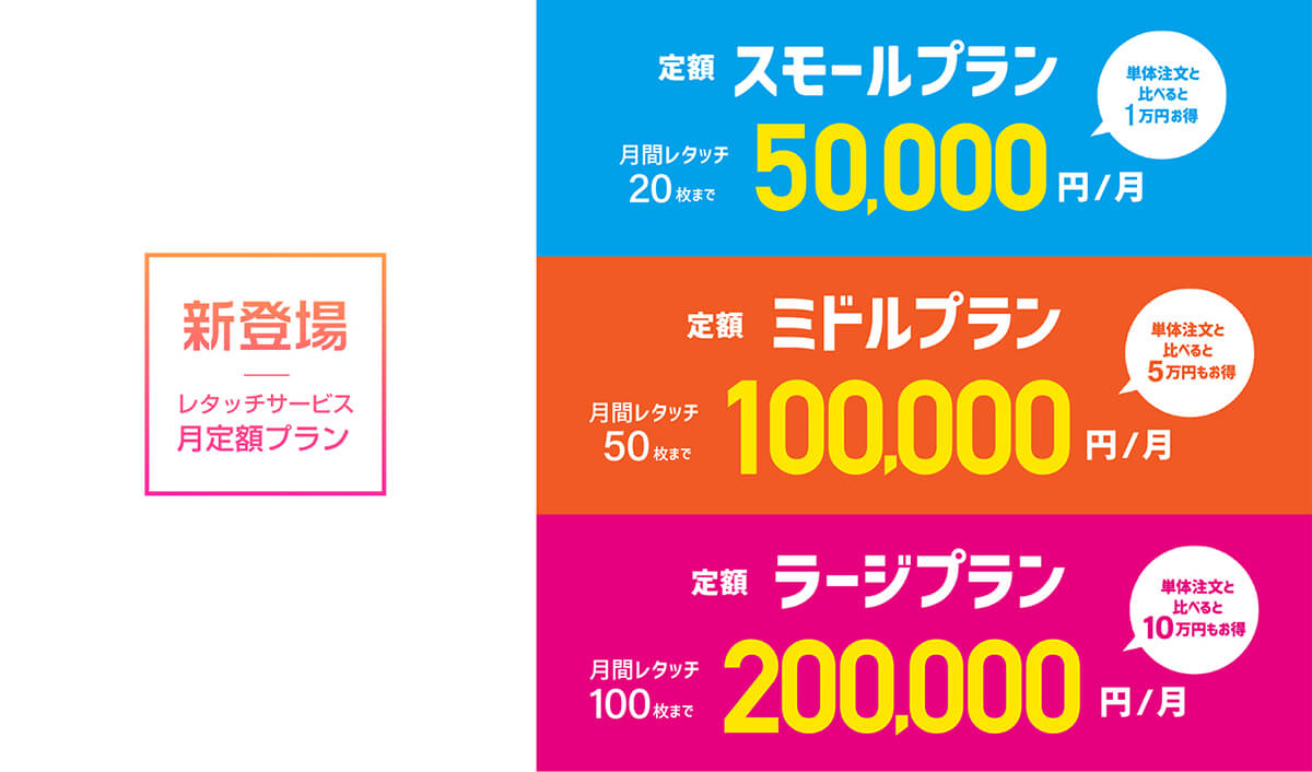 このプラン以外にもレタッチ内容や数量に合わせて柔軟に対応いたします。